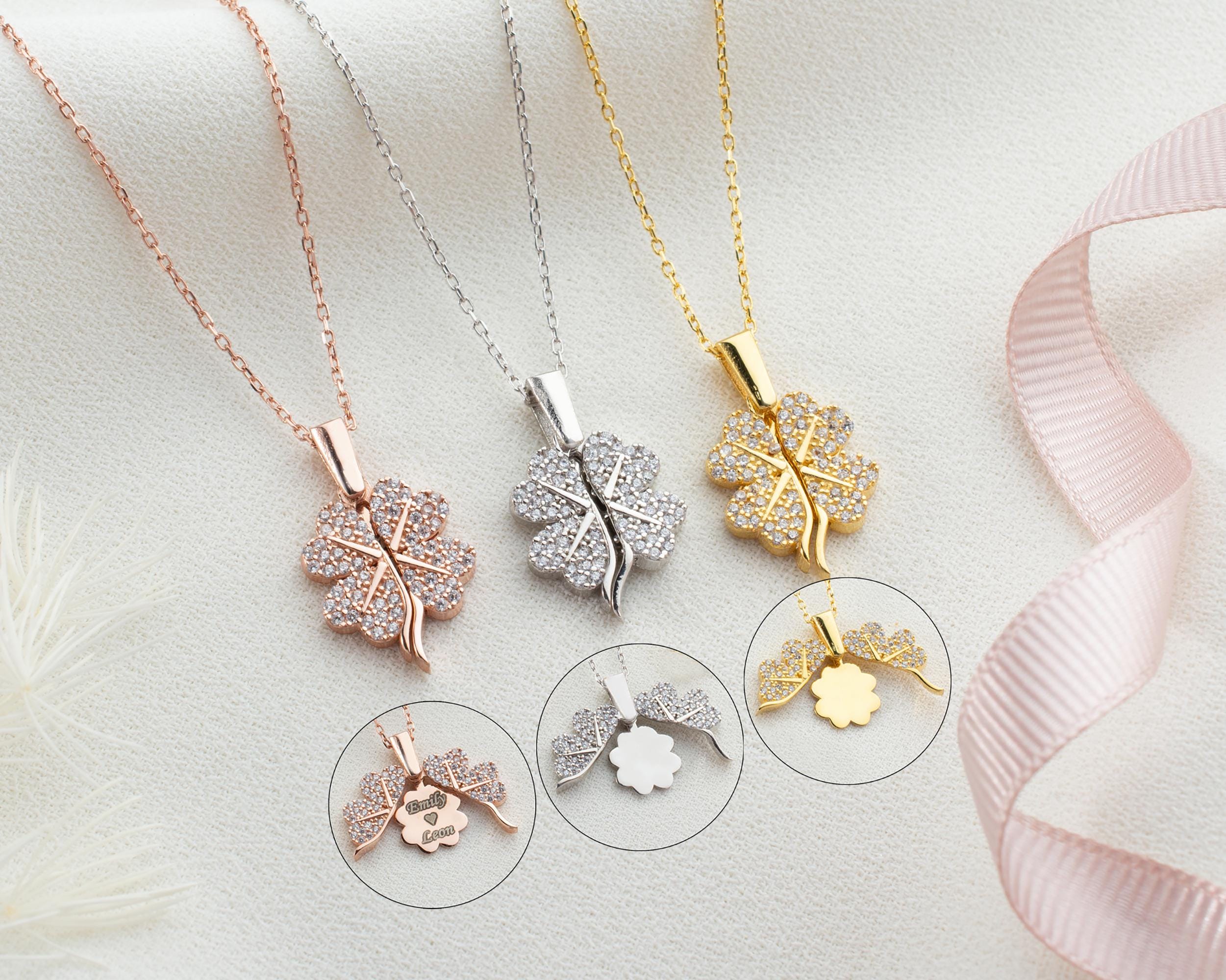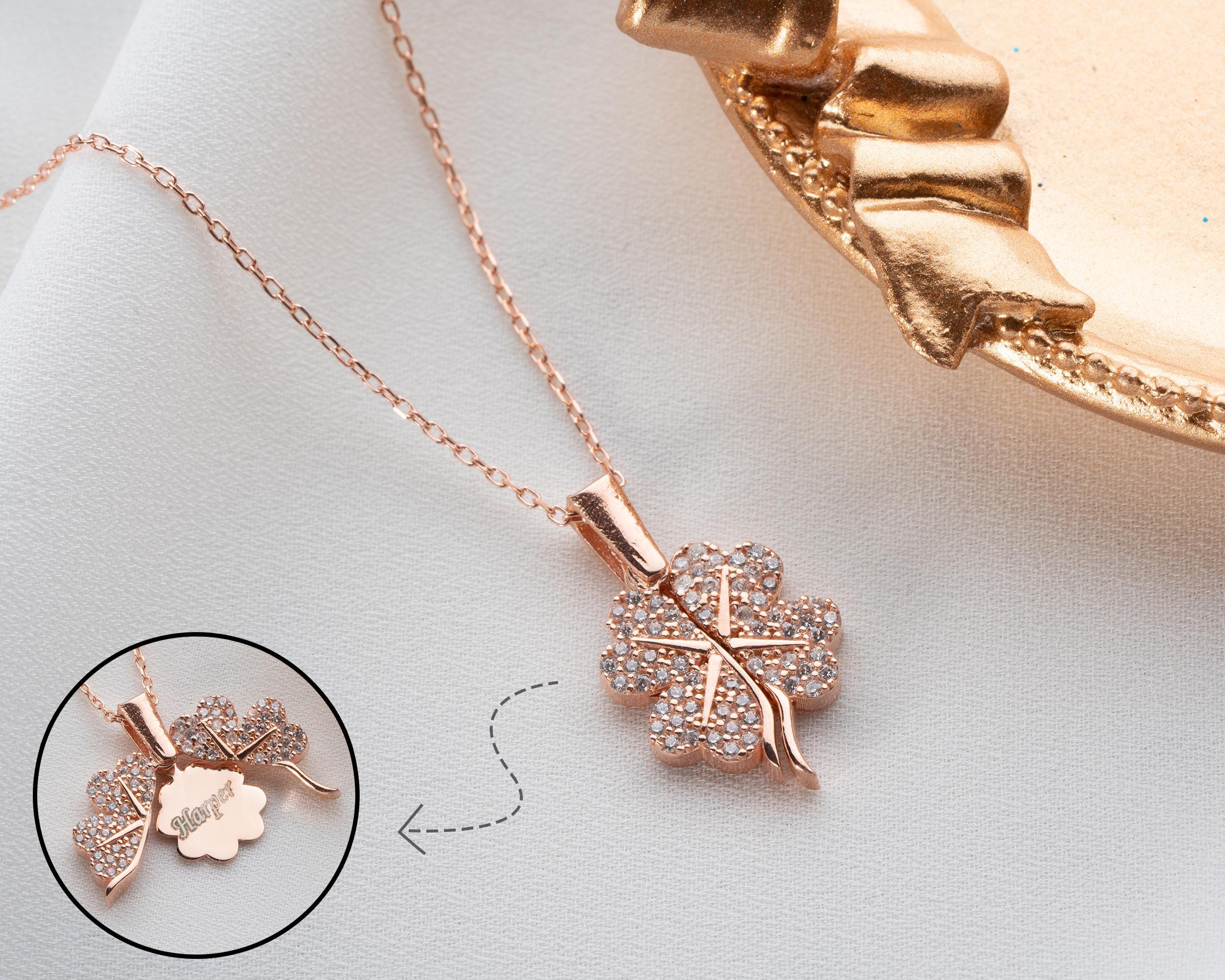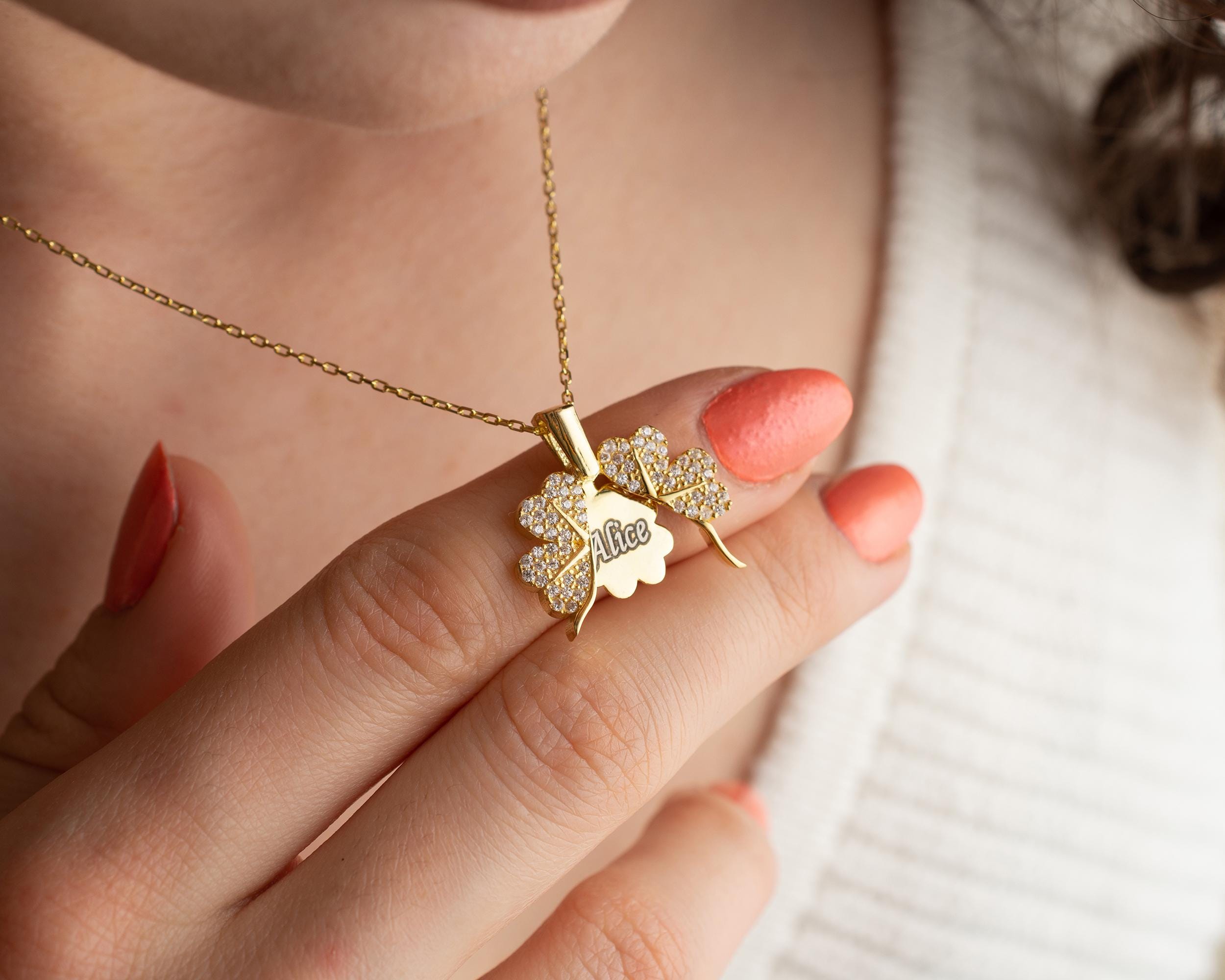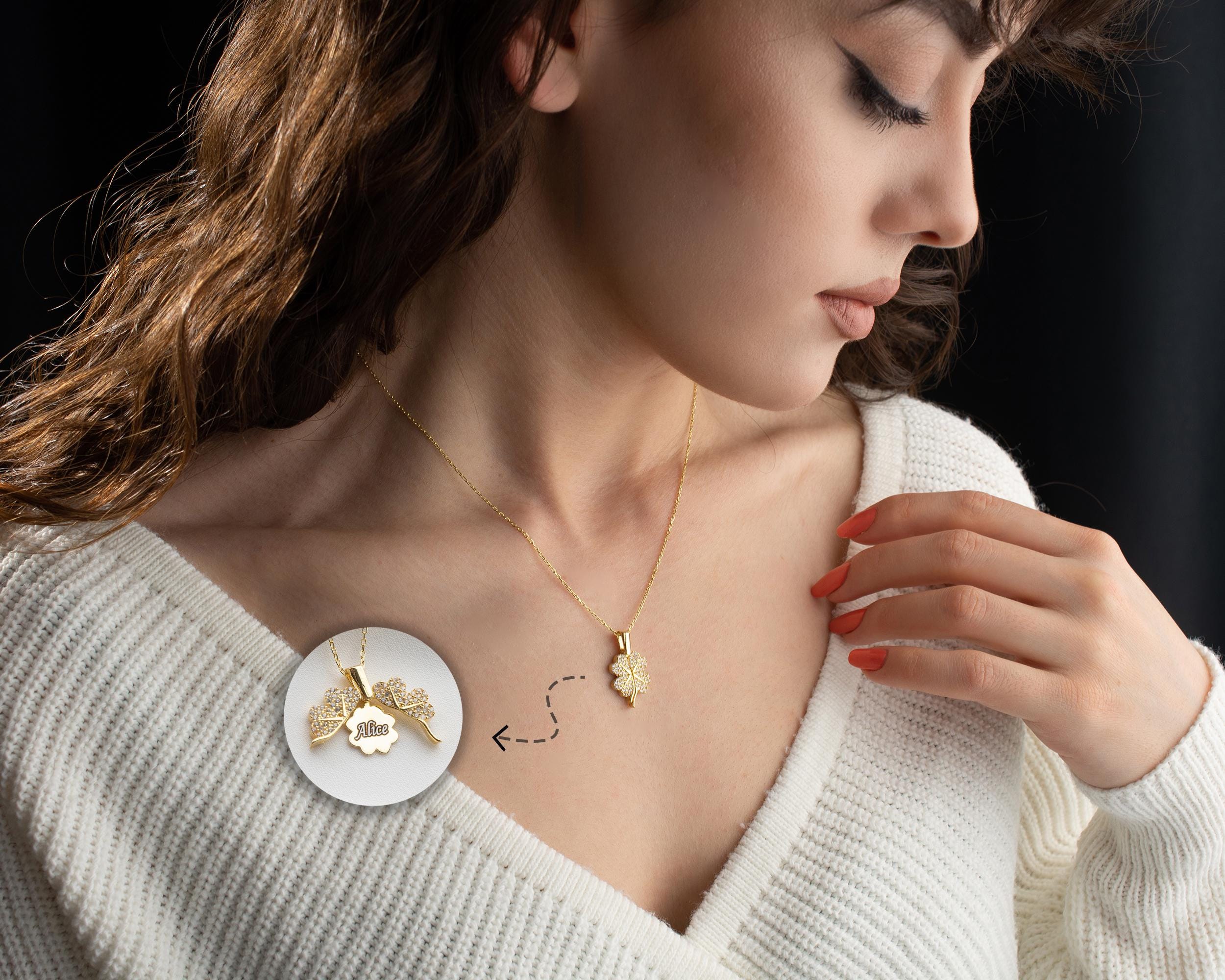 Clover Name Necklace for Women, Shamrock Pendant, Locket Necklace, Luck Necklace, Christmas Gift, Personalised Gift For Her,Handmade Jewelry