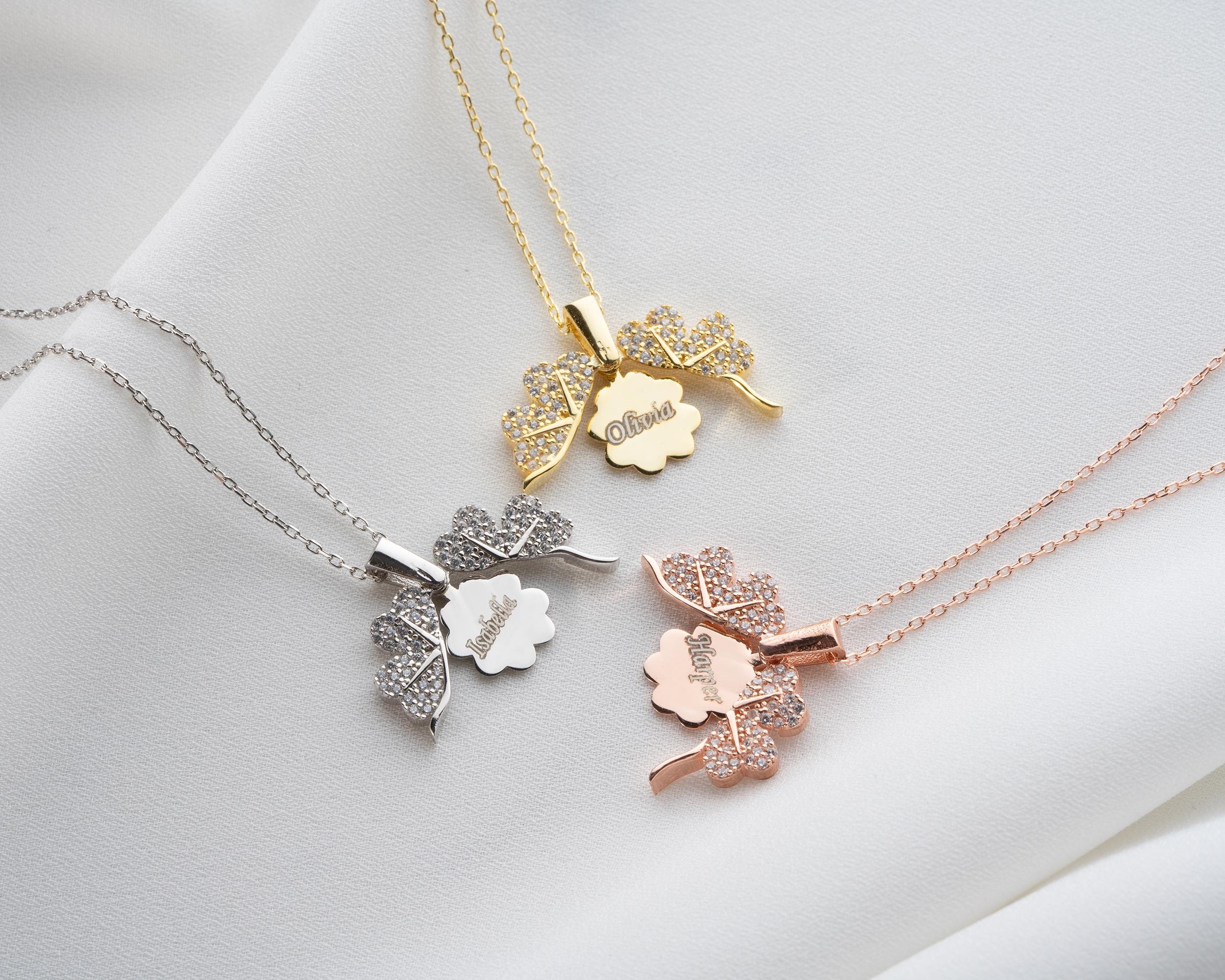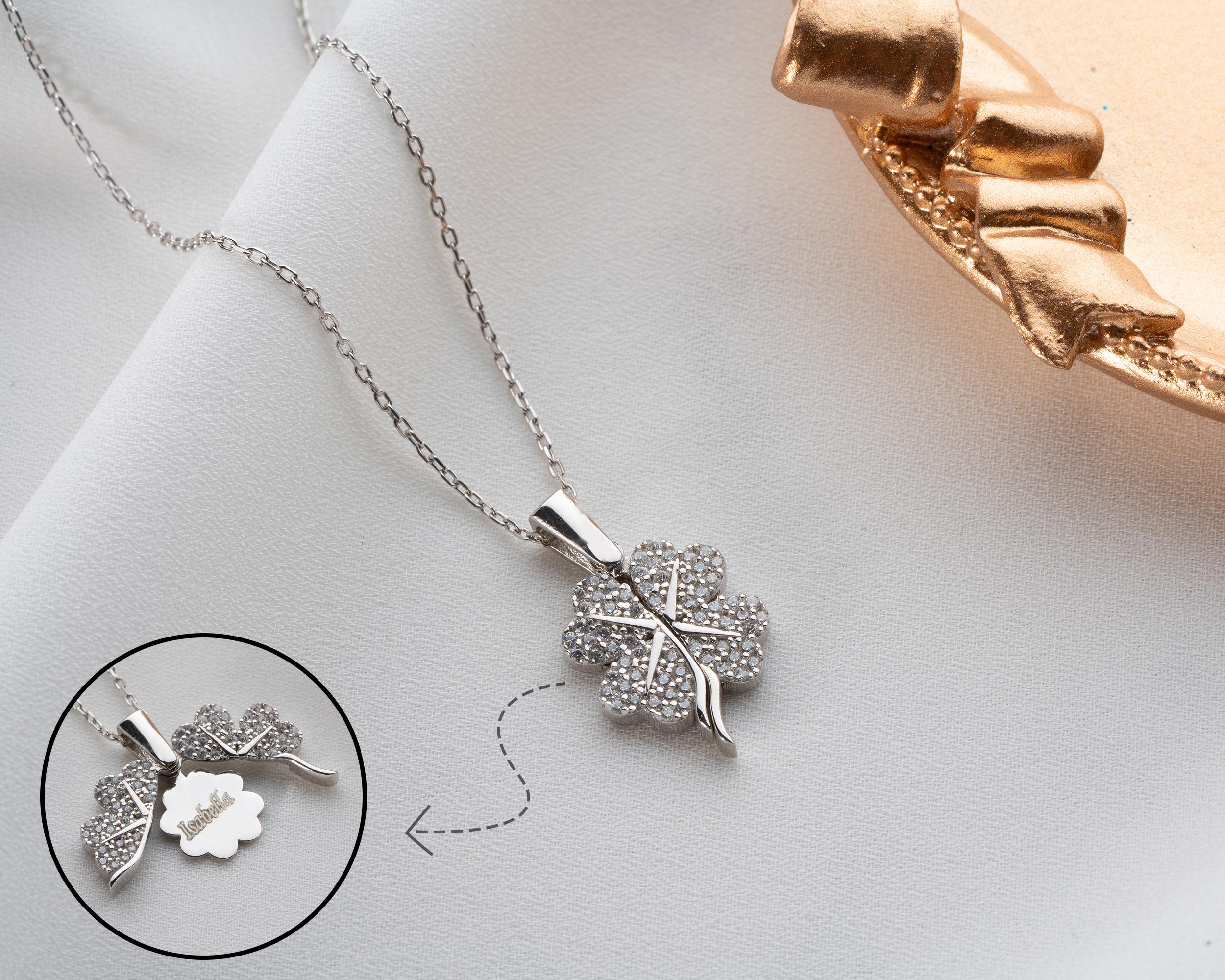 Personalised Gift for Women. Personalized Necklace with Clover. Openable necklace for a secret message. If you want a perfect Christmas Gift, this Personalised Clover Name Necklace for Women will be a great choice. It is handmade jewellery and is made of 925K Sterling Silver for a personalized gift. Summer Gift.